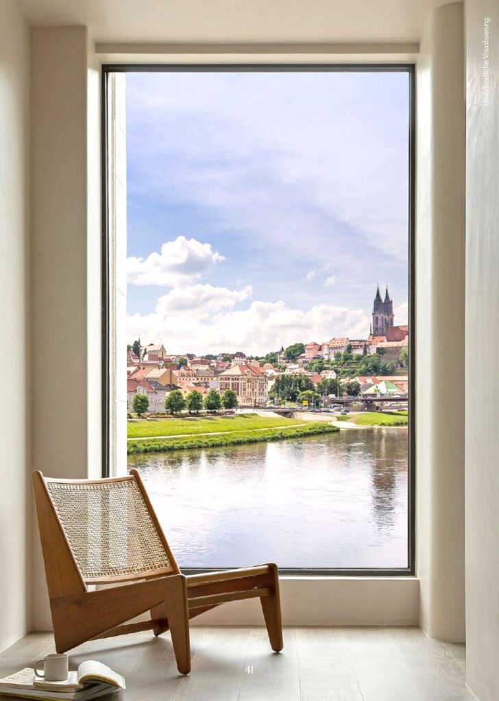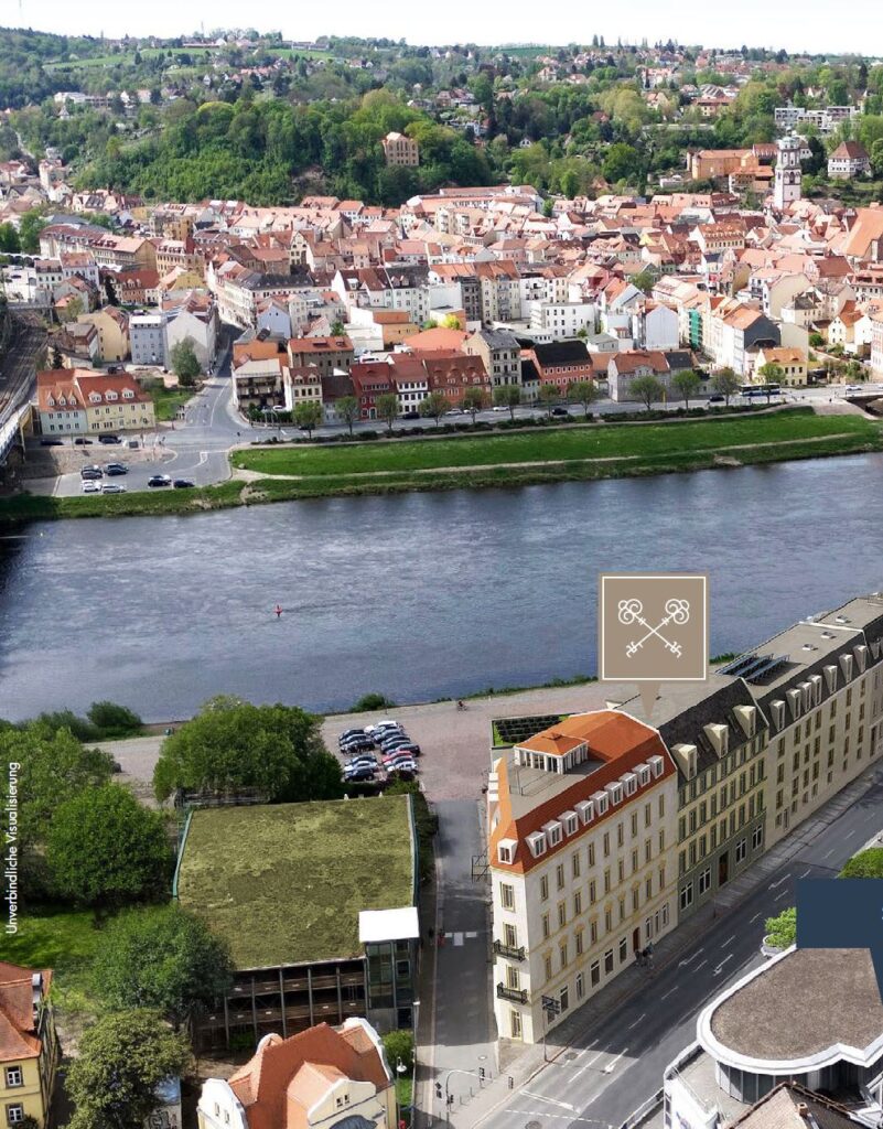 Die lichtdurchfluteten Wohnungen mit Südausrichtung bieten einen atemberaubenden Blick auf das Elbtal und die Altstadt von Meißen. Die nach innen liegenden Einheiten haben großzügige Terrassen mit Blick auf den grünen Innenhof und den hauseigenen Spielplatz.